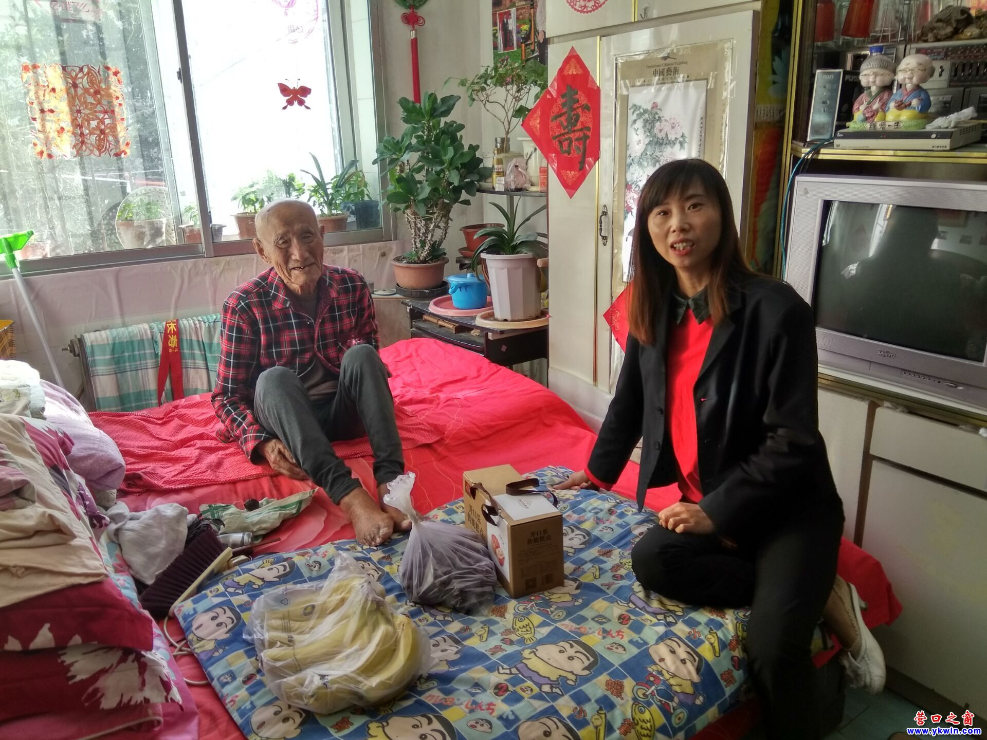 辽河社区中秋节走访慰问百岁老人
