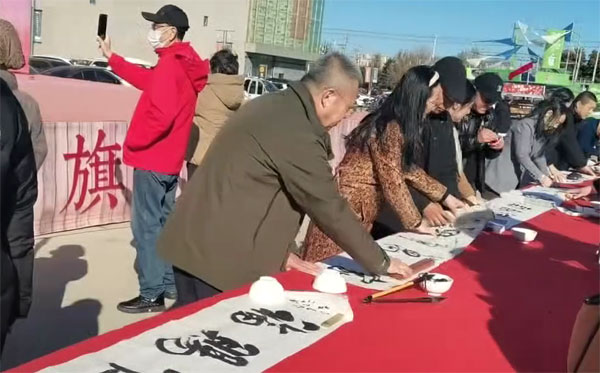 有着300多年历史的红旗大集,人声鼎沸,热闹非凡,新鲜优质的浓副产品、特色文创种类繁多,另人目不暇接,烟火沸腾处,东北风味浓。舞台旁翰墨飘香,书法爱好者们现场泼墨,挥毫行韵,众人争相围观,好一派繁荣景象。这里乡土底色、市井烟火与时代活力融与一体,一场以文化为灵魂的冬日盛宴,令人流连忘返!
