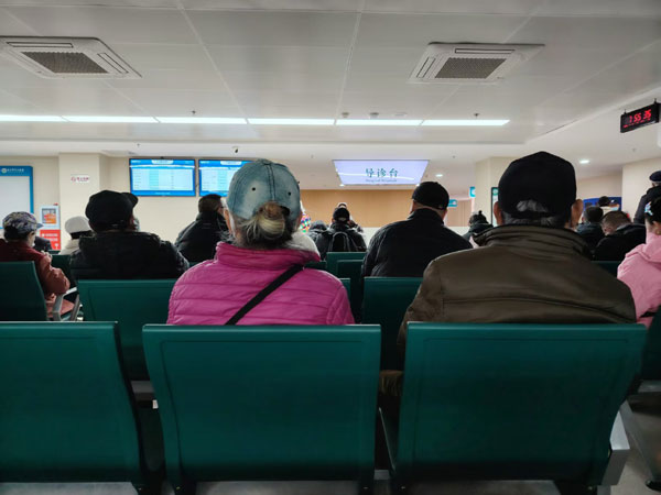 日前,营口市中心医院北院拥有一二百个座椅的候诊大厅座无虚席。患者们都在焦急的等待点自己的姓名看医生。
