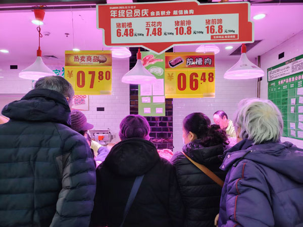 12月12日,走进营口市一家超市,见到猪肉柜台聚集了很多人。靠近一看价签上写着:前槽肉¥6.48。