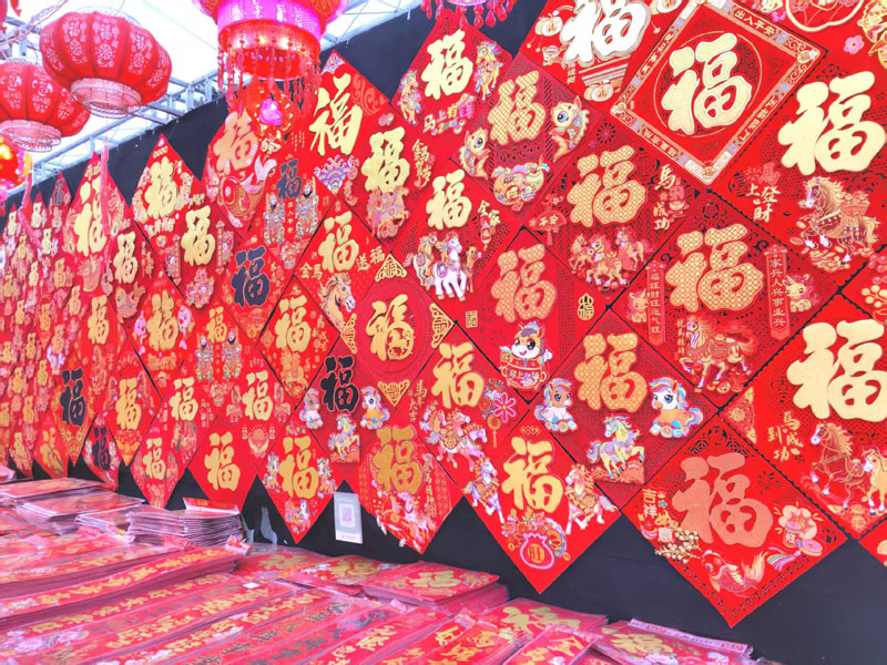 这些金光闪闪的春联、布满墙面的福字和熠熠生辉的灯笼释放的尽是浓厚的年味儿。
