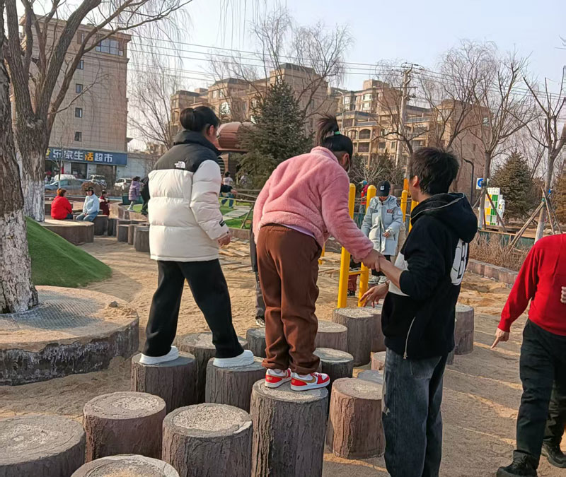 位于营口市西大庙(海潮寺)西侧的儿童乐园于去年建成。占地两万平方米。其中有迎宾广场、综合运动场、神龙岛等各种小型的体育设施。这里面有小山坡、小滑梯、小攀爬架、小秋千、小站桩、小的“密室逃脱“等等。处处突出一个“小”字。春节期间,孩子们来到这里,在家长们的就近保护下,他们有的攀爬于山坡上下,有的行走与石桩之间,有的在小的绿茵场上圆着球星梦,玩得欢声笑语开心快乐。同时也增强了努力向上的胆识勇气。