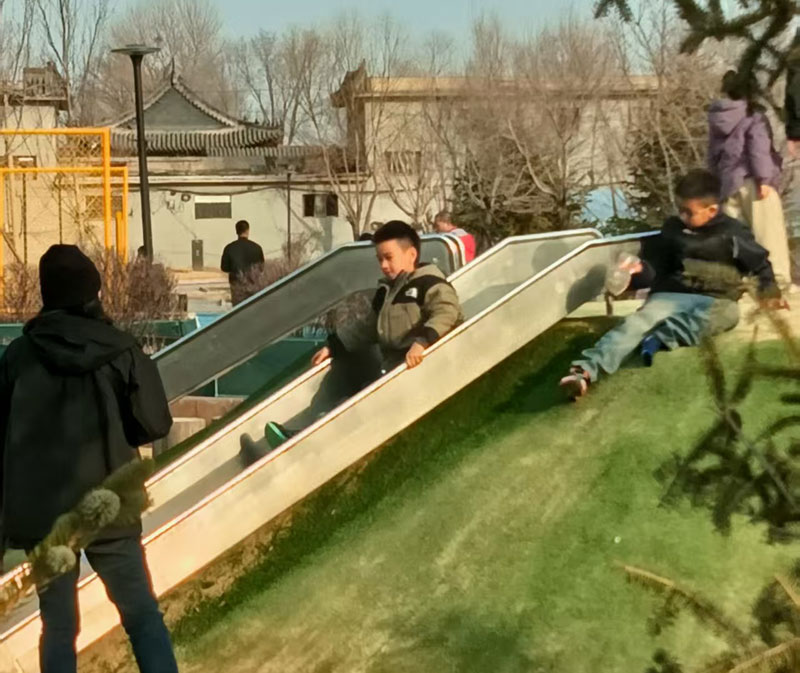 这个乐园冠名为小龙人乐园。故名思议,旨在弘扬华夏图腾的来龙去脉。也寓意国人望子成龙的美好愿望。这里没有围墙没有门槛,而且符合市民在居住地就近进行体育锻炼的要求。家长和孩子们自觉遵守规矩,文明礼貌和谐温馨的节日氛围在这里得到了升华。希望这样的惠民工程越来越好。