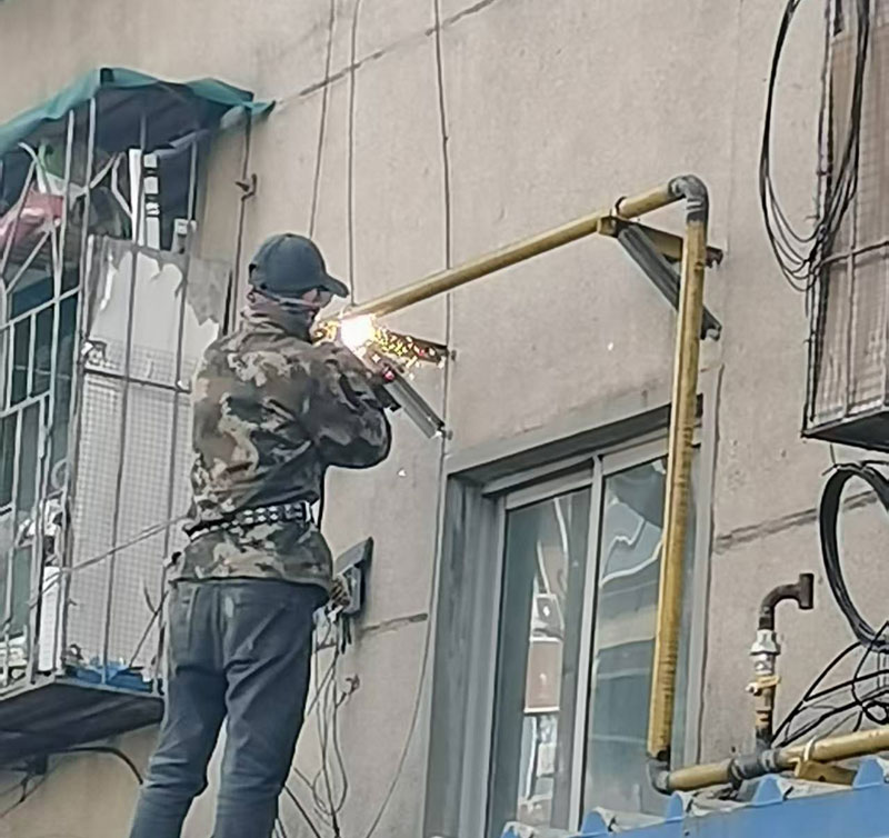 电焊工正在焊接入户主管道