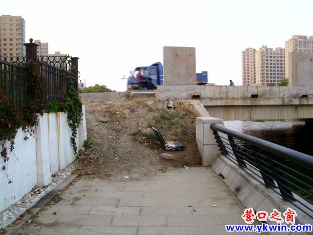 营口营东新城景观河的工程99%在2013年就已完成,剩下的1%2014年不知为何没有继续施工。截至10月8日,这里仍有大小马路没有连通、桥河护栏尚未安上等烂尾的现象,这不仅妨碍通行还存在安全隐患。呼吁有关部门尽快管理。