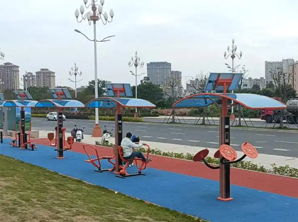 到了双休日,少年儿童健身区成了孩子们的乐园。智能攀爬架旁,小家伙们戴着安全护具,手脚并用地往上爬,架体上的感应灯随着他们的动作亮起,像撒了一把星星;秋千荡起来时,连接的智能设备会轻轻播报“当前高度安全”,家长们坐在旁边的休息椅上,看着孩子的笑脸,偶尔用手机扫一下椅背上的二维码,就能给手机充上电——这是太阳能灯的额外“福利”,白天吸收阳光,晚上照明,还能满足大家的充电需求。