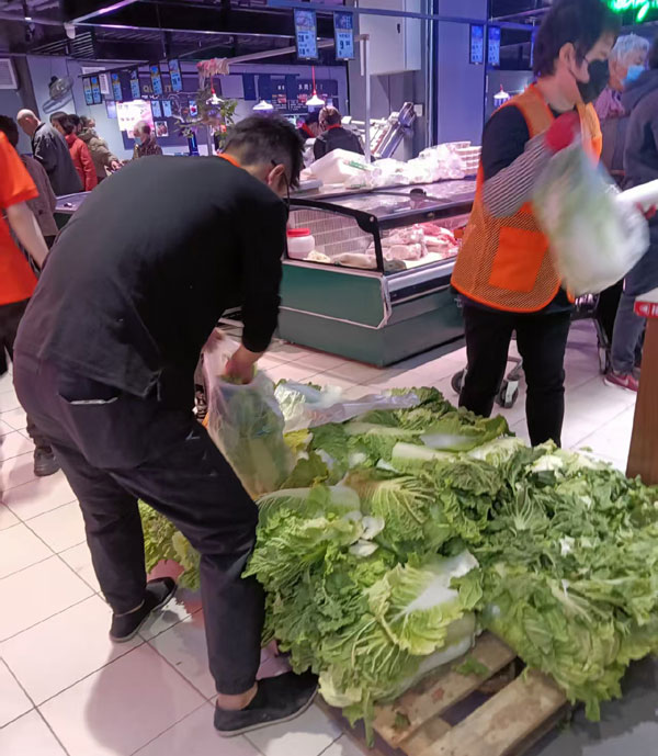 今年这家超市的白菜价格和质量与往年对比,这么便宜是往年未有的事儿。尤其正是明天营口市的秋菜大菜市开始的前期。正像在排队的过程当中,一位老大姐议论说:在这里,用去年买一颗白菜的价钱,现在能买到两棵……