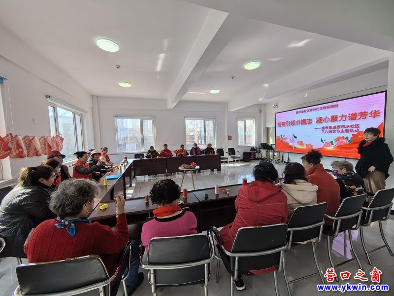 (营口之窗社区讯)人间最美三月天,春华烂漫展新颜。为铸牢中华民族共同体意识 ,在这充满热情、充满活力、充满温暖的美好时节,为庆祝第114个“三八”国际妇女节,渔市街道西市场社区新时代文明实践站组织开展“党建引领巾帼志 凝心聚力谱芳华”妇女节主题活动。西市场社区巾帼志愿者服务队、辖区老党员、居民群众共40余人参加本次活动。