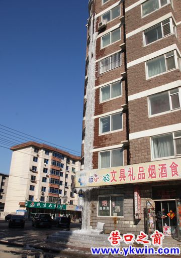 从3月4日开始,站前区文馨园小区B5号楼楼顶一直向下淌水,楼下的马路每天都积水一片。小区物业经理挨门挨户询问,也没查出谁家的太阳能忘记了关上上水阀门。3月10日晚降温,B5号楼外墙排水管周围冻成了一条30多米高的冰柱,过往的居民都驻足观看还在淌水的冰溜子,楼下小卖店的男主人担心冰溜子掉落到行人,就用铁锹将尖状的冰溜子打掉。