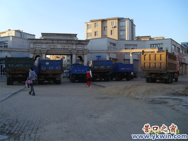 图为小区门前和路边停靠的施工大车,这种情形和现代化的城区很不协调,大杀鲅鱼圈现代化城市的风景,希望规范管理一下。