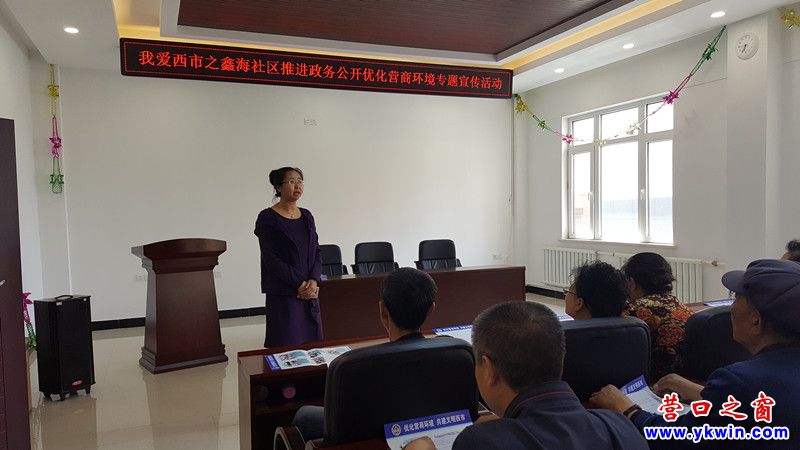 首先,活动现场鑫海社区马主任针对政务公开的重要性及优化营商环境对居民产生的效益进行讲话。其次,我们社区干部为大家宣读《辽宁省优化营商环境条例》中与百姓息息相关的条款,并于百姓互动,举例子说明实际生活中大家经常能接触的情况是否符合国家的规定,我们百姓如何做才是一个合格的守法公民。