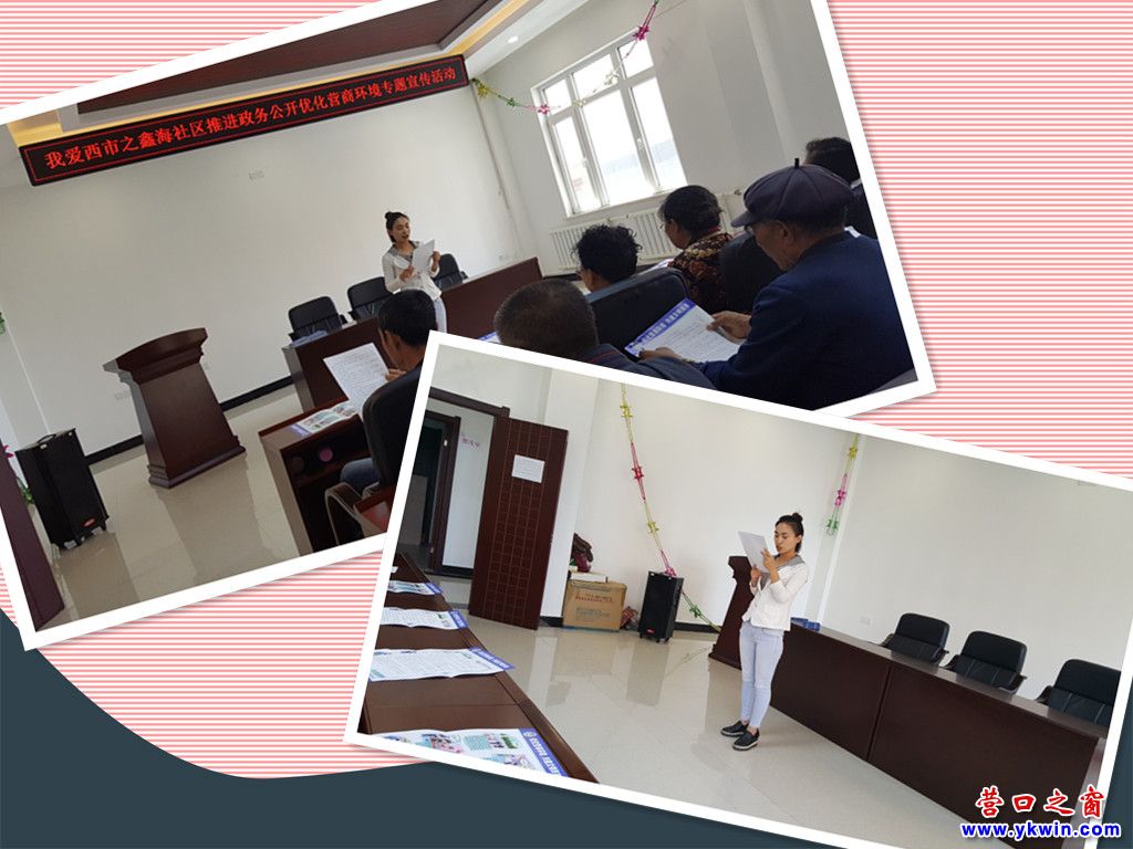 2017.5.15日下午,鑫海社区组织辖区党员、居民、全体社区干部一同开展我爱西市之鑫海社区推进政务公开优化营商环境专题宣传活动。