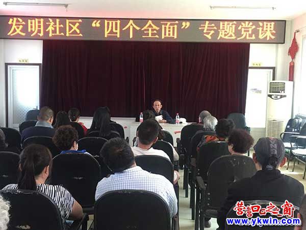5月23日上午,发明社区组织党员开展“四个全面”专题学习,深入学习贯彻习近平总书记“四个全面”重要论述。活动由社区副书记路燕妮主持,特别邀请了孙秀峰孙老为大家进行宣讲。