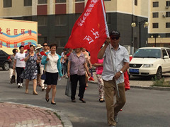 2017年6月29日,西市区滨海办事处鑫海社区、滨河社区联合开展“两学一做”学习教育系列活动,大家一路欢歌笑语,高举党旗庆祝建党96周年。