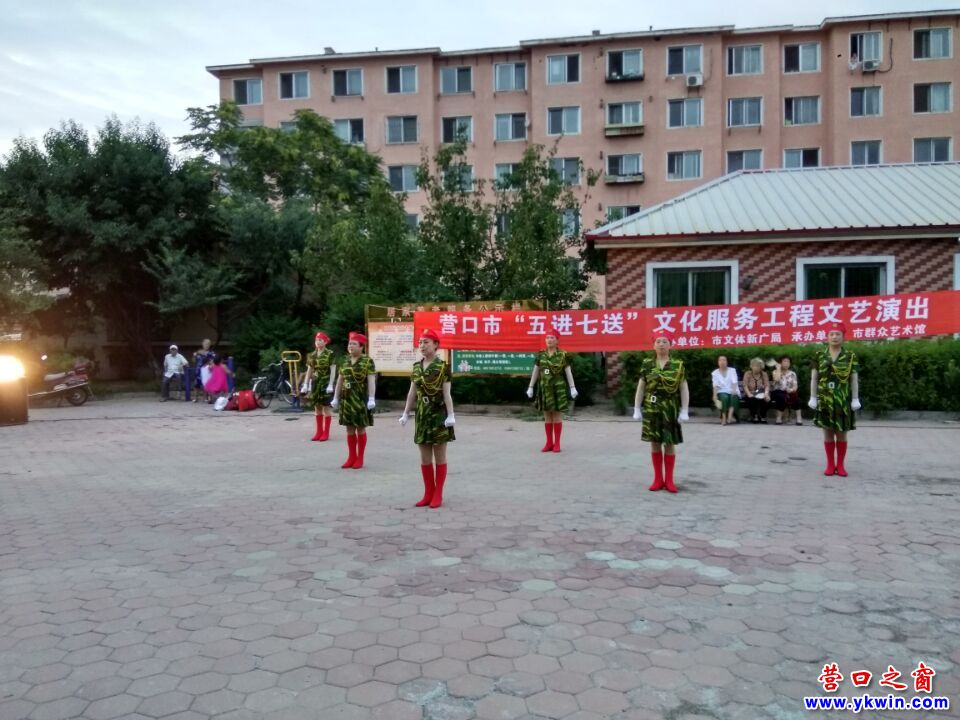 2017年7月27日晚上六点,由营口市文体新广局、市群众艺术馆主办的营口市“五进七送”文化服务工程晚会在辽河社区广场举行文艺演出。