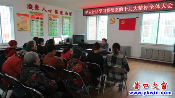 随着举世瞩目的中国共产党第十九次全国代表大会圆满落幕,西市区胜利街道办事处平安社区内掀起了学习、宣传十九大会议精神的热潮。11月10日上午,平安社区开展了“学习贯彻党的十九大精神会议”,社区全体工作人员和50余名党员和群众参加了此次会议,会议由平安社区党委书记李宜红同志传达党的十九大会议精神和内容。