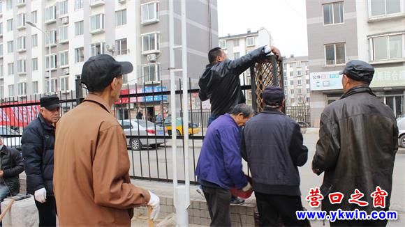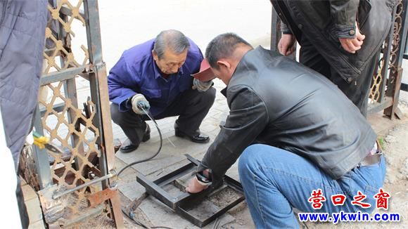 2017年11月13日上午,红运社区“雷锋号”志愿者维修队的志愿者们为红运广厦一期维修开悍断裂的南门。
