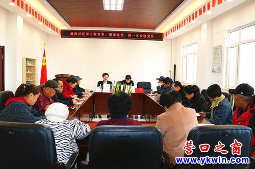 2017年11月14日,在社区党日活动时,鑫海社区号召社区支部党员学习新党章,增强党性,努力做一名合格的党员。