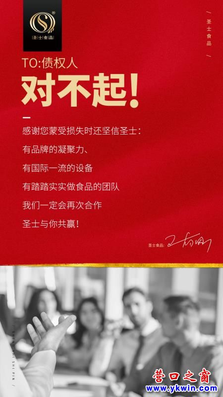 圣士,是营口的圣士,也是营口市民的圣士。我们有理由坚信:营口“圣士公司”一定会在新的“天时、地利、人和”的大环境中重新站起来!王有刚恳请大家的理解与支持,与圣士一起并肩前行。