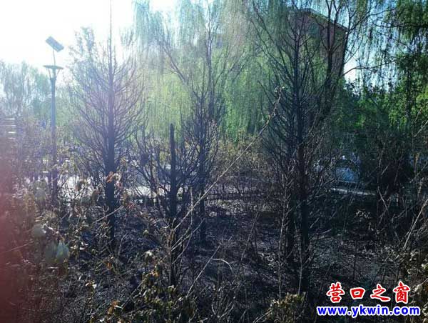 园林中心的四棵珍贵的松(塔)全部烧焦。