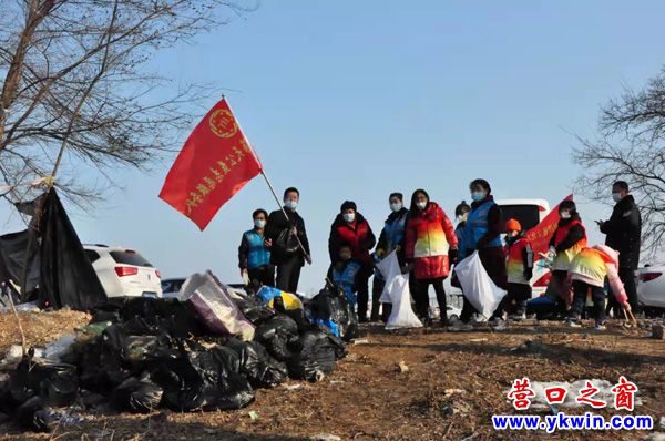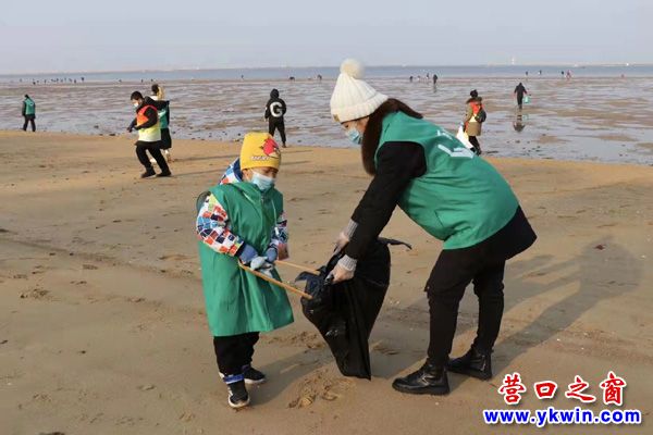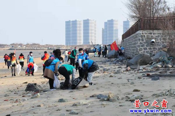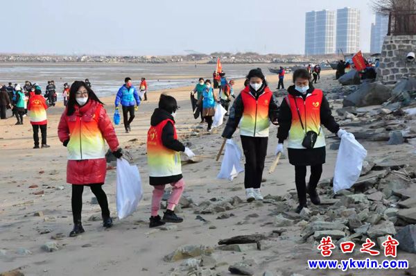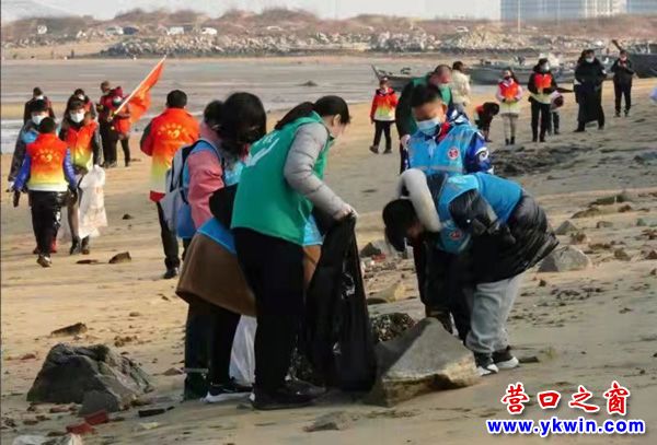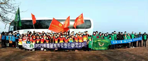 12月5日,天气晴朗,阳光明媚。上午8点30分左右,在盖州市正红旗海滩,一队队打着队旗的志愿者,在负责人领队关刘的带领下,开展2021年美丽海洋公益(营口站)净滩活动。志愿者们带着垃圾袋,竹夹子,沿着海滩认真细心的捡拾塑料瓶,塑料袋,废弃垃圾等,收到明显效果。