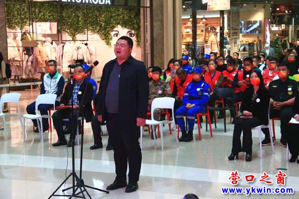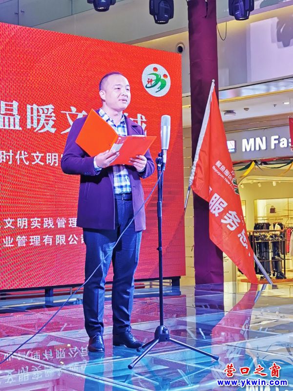 鲅鱼圈区新时代文明实践管理中心主任管睿进行志愿者服务规范的倡议。