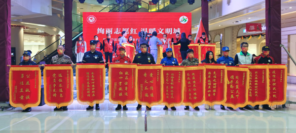 与会领导嘉宾向和各志愿者队伍颁发锦旗。