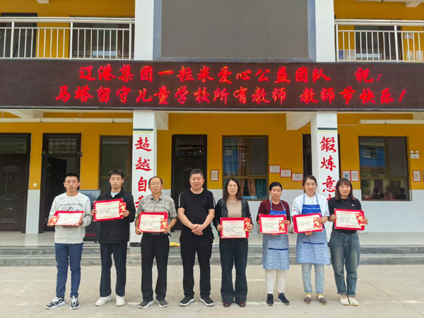 “人民教师无上光荣,每个教师都要珍惜这份光荣”。今年9月10日是我国第41个教师节,辽港集团一粒米爱心公益团队募集资金2000元进行对口捐赠,在秋日为马塔留守儿童学校的老师每个人送去一份关爱和表彰,定制了保温水杯同招商局慈善基金捐赠的精制面粉1000斤一起送到学校。