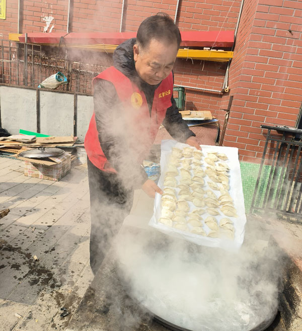 上午9时,志愿者们身着红马甲,在社区工作人员的组织下分工协作。洗菜、切菜、调馅、擀皮、包饺子……各个环节井然有序。现场志愿者们齐动手包饺子,不一会儿,案板上便摆满了形态各异的饺子,有的圆润饱满,有的小巧精致,每一份都承载着对长辈的关怀。