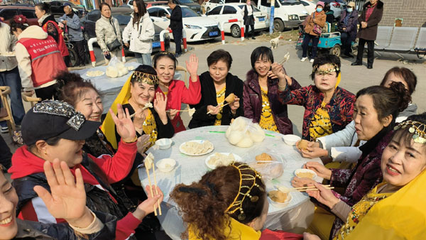 10月28日,鲅鱼圈红星社区重阳节"百家宴"暖心开席, 30余名志愿者 包饺子、唠家常、舞蹈表演等形式为老人们送上节日祝福。