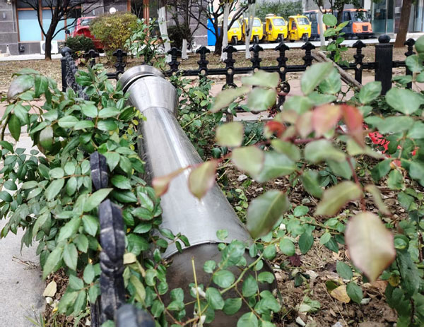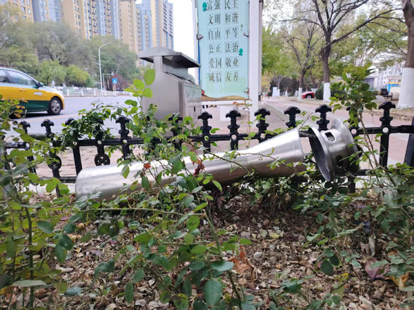 10月31日,沿着营口市渤海大街西行至3路公交车雷锋中学站东边时,突然发现一个烟柱像弃婴一样躺在绿化带的花草丛中。