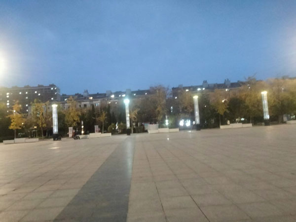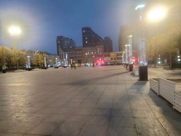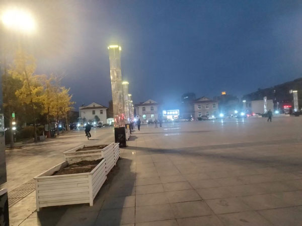 我昨天10月30日晚6时走进和谐广场时,昔日广场南北两侧的小商贩摆的摊位不见了,蹦蹦床也没有了,往昔广场内有三家小火车在广场内穿梭行驶也不见了,广场东部烤肠,小吃,凉粉,一些小摊位也无踪形。听说大石桥创建文明城市,综合执法不再让商贩在广场叫卖,还市民活动一片净土。