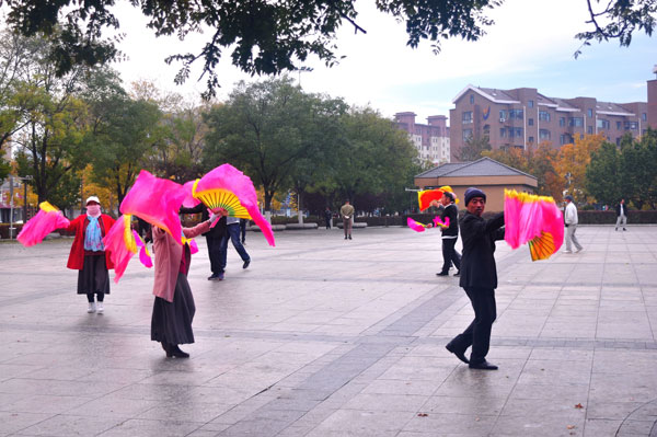 走进中兴广场,首先听到的是悠扬悦耳的歌声,欢快的舞曲;看到的是穿着休闲服装,手拿彩扇,翩翩起舞的大东北老年秧歌队的队员们。打拳的,唱歌的,跳老年交际舞的……老人们欢歌笑语,一片祥和的景象。