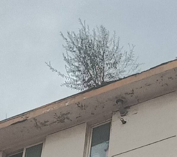 这般生命力固然动人,却终究不合时宜。若能有相关部门留意到这处角落,细细检修屋顶,妥善移去植株,既护住了老楼的筋骨,也让住户免了淋雨之扰,想必这栋楼的日子,会更安稳些。毕竟,风景再好,也不及居家无忧来得踏实。