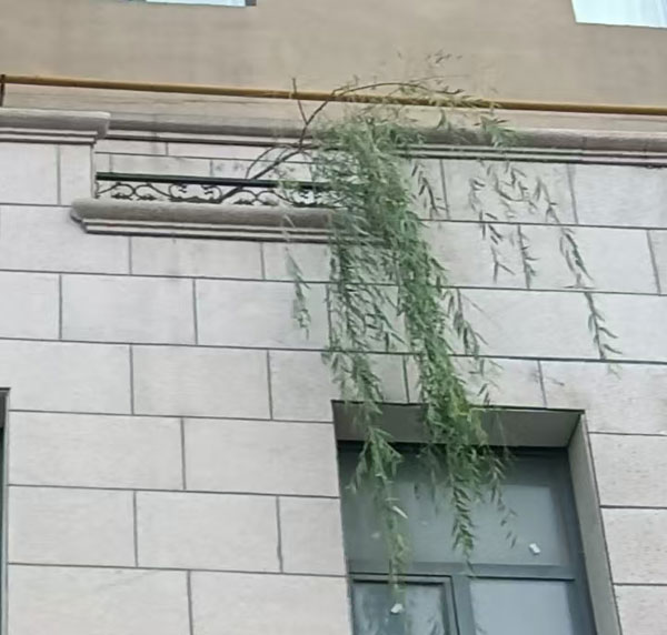 营口市西市区西部的鑫居家园小区,虽然是旧楼,但是外表保持较新的楼的楼顶,不知何时竟悄悄长出了几株柳树。它们在砖缝里扎根,瓦隙间抽枝,春日发新绿如翠玉,秋日垂黄叶似碎金,风来枝叶轻摇,彰显了顽强的生命力,成了附近一道特别的景致。