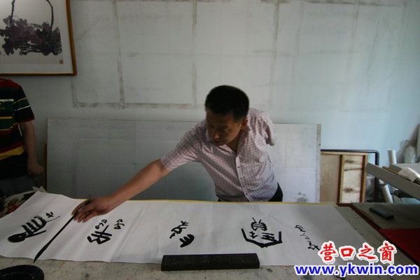 在盖州书法界提起杜海生,人们就想起他的篆书。今年49岁的杜海生,与他所痴迷的大篆、隶书打了20多年交道,颇有体会和心得。