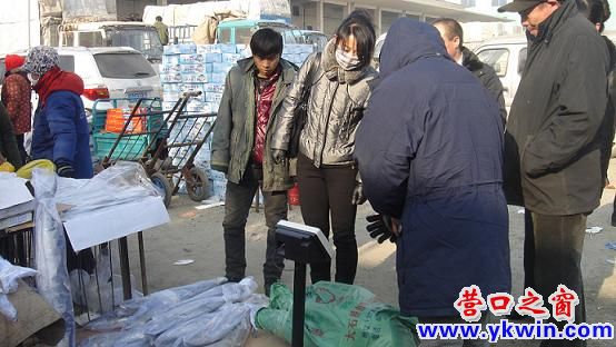 春节将至,大石桥市冷冻海鲜批发市场生意火爆。虽然天气寒冷,但采购海鲜的市民们依然兴致高昂。