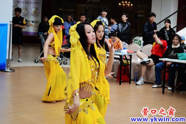 在乐都汇举行的第一届乒乓球大赛开幕式上,来自我市某舞蹈团队的金衣美女们现场献舞,这华丽的装扮加上优美的舞姿,吸引了众多观众驻足观看。