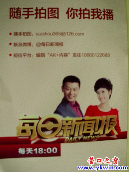 8月29日,《营口之窗》通讯员胡然收到安徽卫视寄来的一封信(图一)。拆开一看,里面装着一个《证书》(图二)。上面写到:“胡然先生:您拍摄的作品《小太阳当电炉 一举两得热便当》于2013年5月9日在安徽卫视《每日新闻报》中播出。特此证明。证书背面是安徽卫视《每日新闻报》两位男女主持人的照片和本栏目电子信箱(图三)等信息。