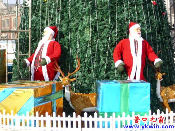 位于溜冰场中央的圣诞老人像