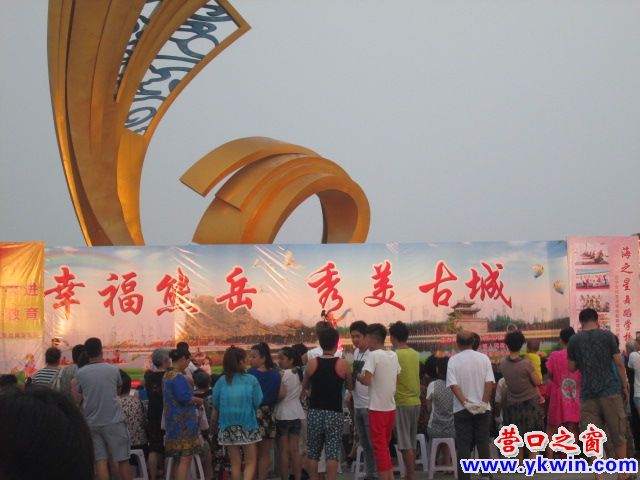 熊岳大河公园,举办大型演出,广大市民高兴观看节目,为演员们喝彩。