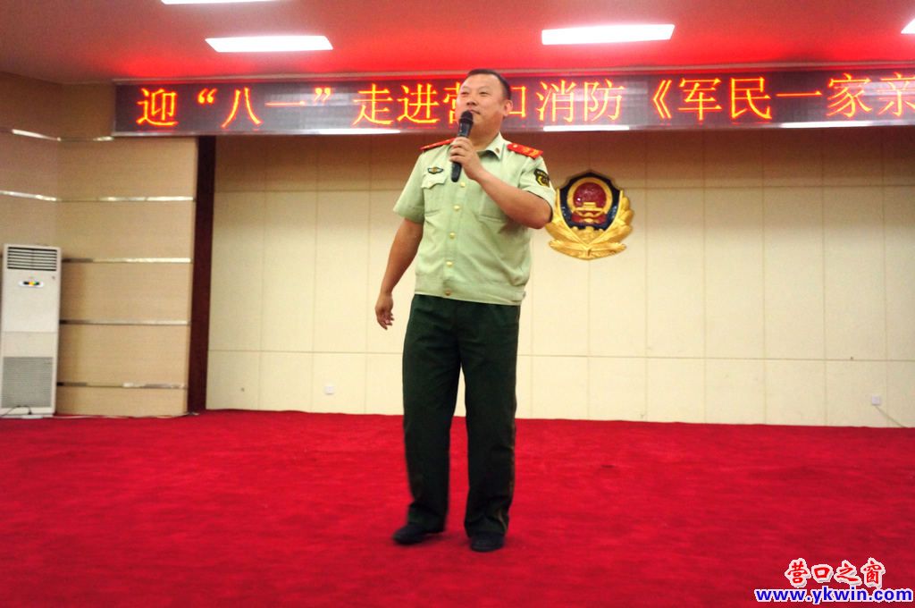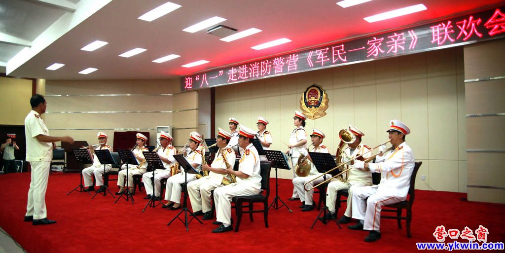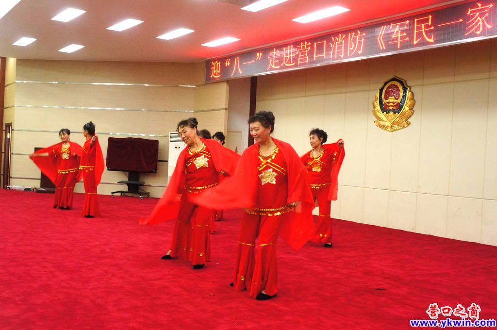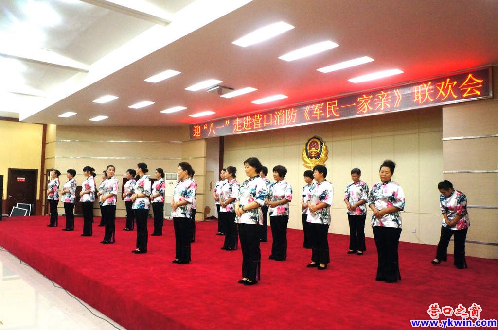 7月29日由辰威广播电视少儿艺术团,营口中华传统文化研究会,老边边城镇展望社区与营口消防局共同举办[迎八一走进消防局军民一家亲联欢会在消防局会议室召开,场面热烈,有着专业水准的社区大妈,少年儿童,用歌声,舞蹈展示他们热爱祖国,热爱党,热爱人民子弟兵的满怀豪情。消防官兵也表演诗歌,一场鱼水情深的热烈场面令人震撼。