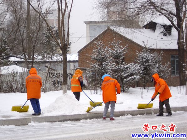1月21日凌晨,营口下了今冬最大的一场雪。天刚亮,一群群穿着橘黄色外衣的环卫工人就带着雪锹来到全市的各条马路,对企图制造车祸的积雪进行“强迁”。以下是他们在营东新城马路“强迁”积雪的场面。
