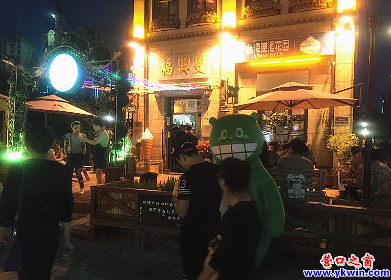 现在,商家为了招揽顾客,可以说是用了各种各样的新奇方法。位于老街上一家名为“双兴福”的冷饮店门前,一个大型的绿色卡通玩偶出现在路过市民的视野里。它摇摇摆摆的跟过往的市民打招呼,进行互动,路过的大人小孩们也纷纷与它合影,可爱的形象吸引了很多的顾客,店内客人络绎不绝。