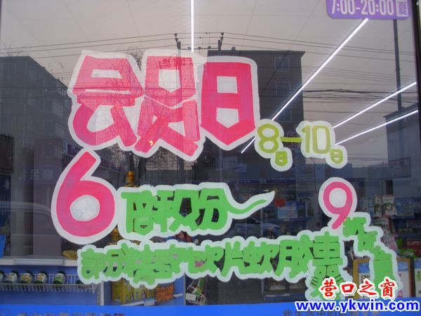 1月2日,一家药店的收款员正站在屋里往大门的玻璃上写广告语,待仔细一看她写的是反字,即在屋里看是反字,在屋外看是正字。她说,冬天到外面写字冷,所以在屋里写反字。