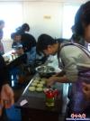 7日下午学府路上几个人拉着一条红色横幅,是一家叫”黄金粥“的店要开张了,这店名倒是吸引了众人。