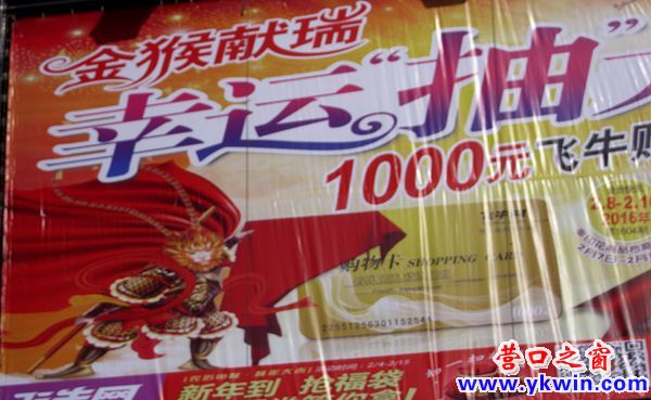 (营口之窗网讯) 春节前,营口大润发超市制作了一个巨型广告牌,上面写着“金猴献瑞”。其实,这里的“金”应改为“火”才对,即“火猴献瑞”。因为今年是丙申猴年,丙在五行中属火,故今年的猴是个火猴。据查,上一个金猴年是1980年;下一个金猴年是2040年,与今年有24年之遥。自1980年至2016年之间的四个猴年分别是庚申年(1980年金猴)、壬申年(1992年水猴)、甲申年(2004年木猴)、丙申年(2016年火猴)。