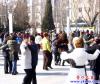 人民公园西门前有恭贺新春向营口市民拜年,在每个大字下方可爱的小猴却遭到破坏。
