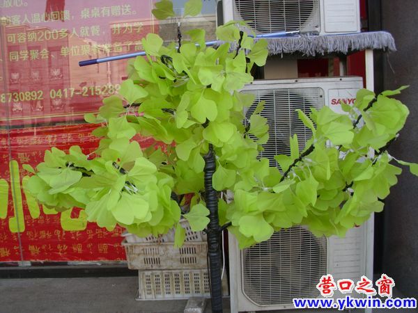 营口乍暖还寒,冬眠的花草树木丝毫没有绽放的迹象。在商贾云集的营口盼盼路边只有一个小吃部门前摆放的两颗绿“树”和两颗粉“树 "给人们带来了春天的气息。