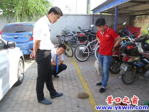 6月6日凌晨,一只刺猬无意闯入营口东外环路边的一家汽车4S店的院子。看门的小狗发现后,立即上前迎战:汪!汪!汪!可是,狗嘴刚一碰到刺猬马上就退了回来,因为它咬到刺猬的刺了。